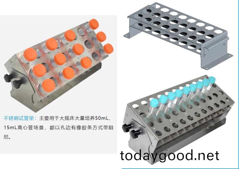 使用摇床培养时会用到锥型瓶、输液瓶、试管、离心管、培养板等容器,来放置培养液进行培养。为了将这些容器固定在摇床的摇板上,需要用到不同的附件来固定它们,另外,还有一些提高培养效率或使用方便性的附件,最近几期我们将专门对此作介绍。(如果用户有更多功能拓展的附件需求可以向我们反馈)