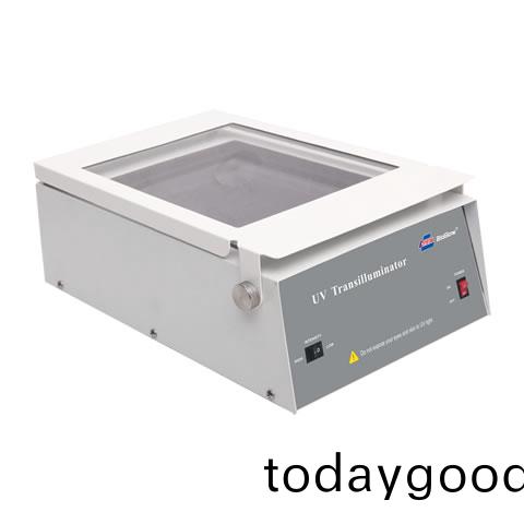 台式紫外透射仪是一款简单、实用的紫外分析设备。产品外形简洁、体积小、视窗大、光强分布均匀。其光强选择开关(全光强及半光强)为观察不同的样品提供了使用的方便性和结果的可靠性。随机配置的紫外线防护罩能有效保护操作人员。